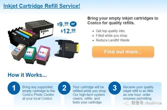 如果家里有打印机的人都知道,打印机的墨盒真心不便宜,不过如果你把你用完的墨盒带到Costco去refrill,那么比买新的要节省70%!