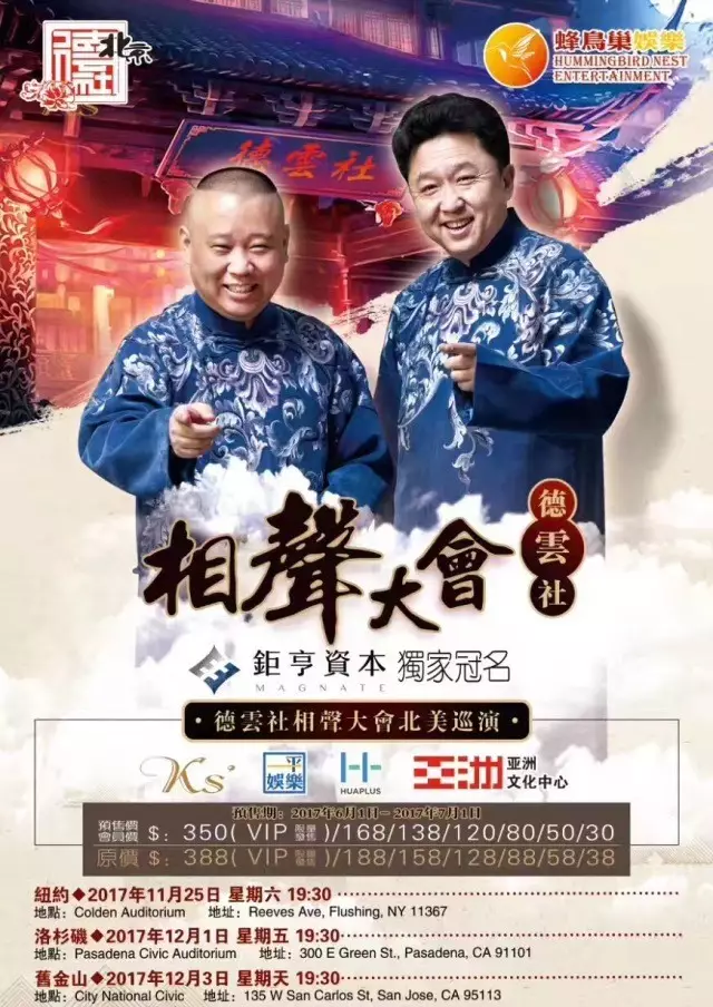 今年底,郭德纲老师将再次携德云社众人来美国巡演啦!
