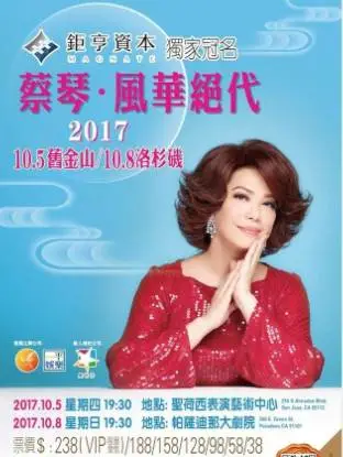 台湾殿堂级歌后蔡琴北加湾区和南加洛杉矶演唱会来了。演绎昔日经典金曲“读你”、“恰似你的温柔”、“最后一夜”、“你的眼神”、“被遗忘的时光”