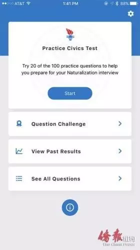 与此同时,该应用同时向民众提供阅读、听力以及写作的备考范围以及考试建议,民众可以通过应用下载相关备考资料。针对该手机应用,移民局强调,该应用为官方推出唯一指定应用。下载免费并且使用者无需注册,不用担心个人信息的泄漏。有意下载民众等登陆手机应有商店,搜索关键词“USCIS Civics Test”即可下载。