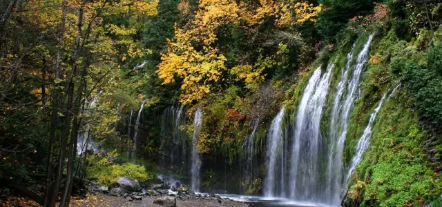 从Sacramento出发以北三小时车程就到了仙境瀑布,山间的凸出的石头将水流分开,清澈的水流如细丝一般垂直而下,和山间细密的绿支映衬,夏季的像是现实版的绿野仙踪,秋天红叶宛若一副油画,这样的景致被称为仙境实在名副其实。