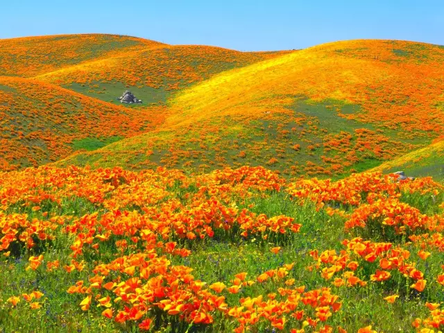 羚羊谷(Antelope Valley)的是传说中的罂粟的保留地,这里可以欣赏到这个世界奇观入主“世界十大花海”之一的神奇秘境。罂粟花的花期约为每年的3月到4月,但是通常最佳的赏花时间是4月中旬的上午10点到下午2 点,因为只有在阳光下,你才能看到它们最娇艳的姿态。