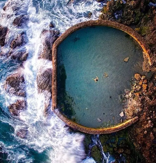 利用无人机飞至Laguna Beach从高空俯瞰,你会发现一座环形神秘泳池。只是此刻池内只有沙土,涨潮时分浸入的海水又能让这里有另一番面貌。