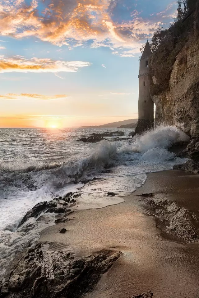 悬崖、海滩、灯塔这样的画面给人一种神秘的美感,南加州橘郡的Laguna Beach就有每样一副这样的美景。这里矗立着橘子郡唯一的灯塔La Tour,被当地人叫做“海盗塔”。这座60英尺高的建筑建于1926年,说起来头也让人忍俊不禁——它原本是为了帮助加州议员从悬崖的家走到海滩而建造的。