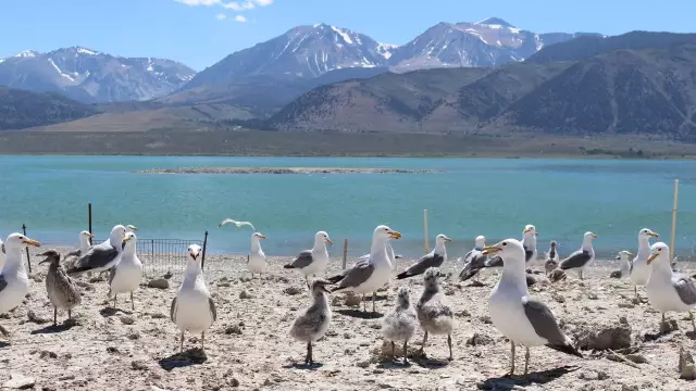 夏季的莫诺湖一改往日的冷清,游客众多,偶有鸟儿也来栖息....去优胜美地可以顺便去莫诺湖玩玩哟!