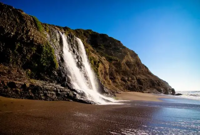 Alamere Falls位于旧金山北边Point Reyes National Seashore。这个瀑布最壮观是她可以直接通入大海,名副其实的 “潮汐瀑布”,这种瀑布全世界只有25个,全美也只有六个,堪称奇观!