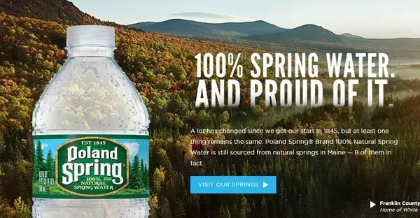 据《彭博》报导,日前一份上告至康乃狄克州联邦法院的诉状上指出,北美雀巢饮用水(Nestle Waters North America)Poland Spring Water瓶装水外包装写着100%的天然泉水,但却是缅因州的地下水,不符合食品药物管理局(FDA)的天然泉水标准,涉嫌欺瞒消费者,也会以纽泽西州、纽约州及麻州的法律去寻求赔偿。
